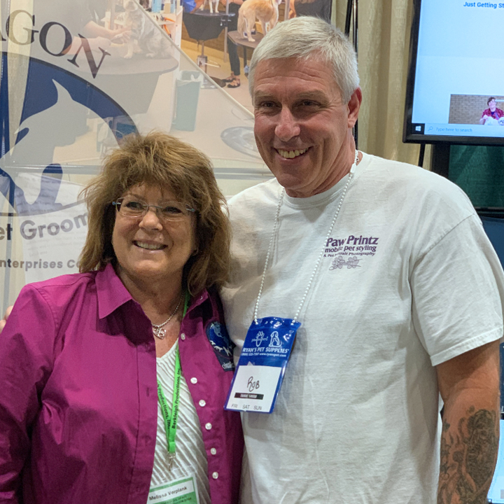 During the long days home recovering, his wife Bonny was running their small business, “Paw Printz Mobile Pet Styling,” and traveling around Rochester, New York, grooming dogs. Rob said he started grooming his own dogs and learning tricks from his wife but wasn’t able to do much during recovery. He subscribed to the Learn2GroomDogs.com video subscription and started soaking in the information. Slowly, he started going out with Bonny and grooming alongside her.